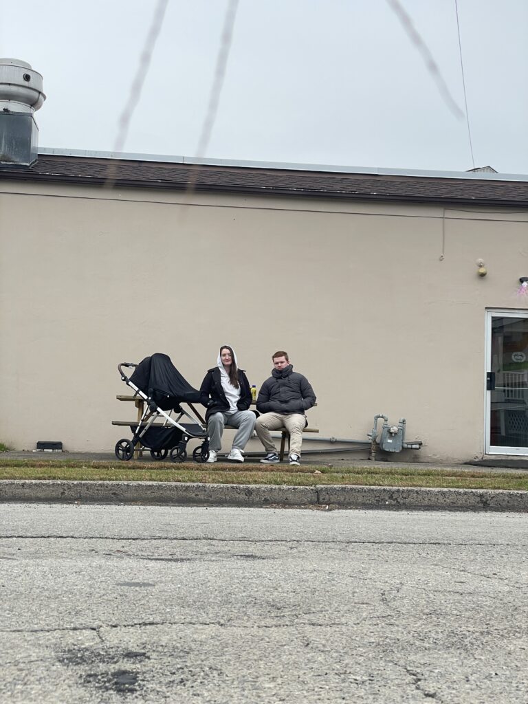 So today started at 4 am with our precious angel waking up and refusing to go back to sleep. We fed and rocked and rocked and rocked and she just wasn’t having it. Jack and I were struggling to not bicker and remain positive. We do pretty well at taking turns trying to put her down but after 2+ hours morale was low and we started to wonder if we would ever sleep again. Jack finally just got up with her and let me sleep until 8 <3. We then got all bundled up because it was 40 degrees and windy. We decided we wanted a cheesesteak and headed off to the Steak and Hoagie Factory. We were early since they open at 10 so we decided to flex on the haters. See below.
