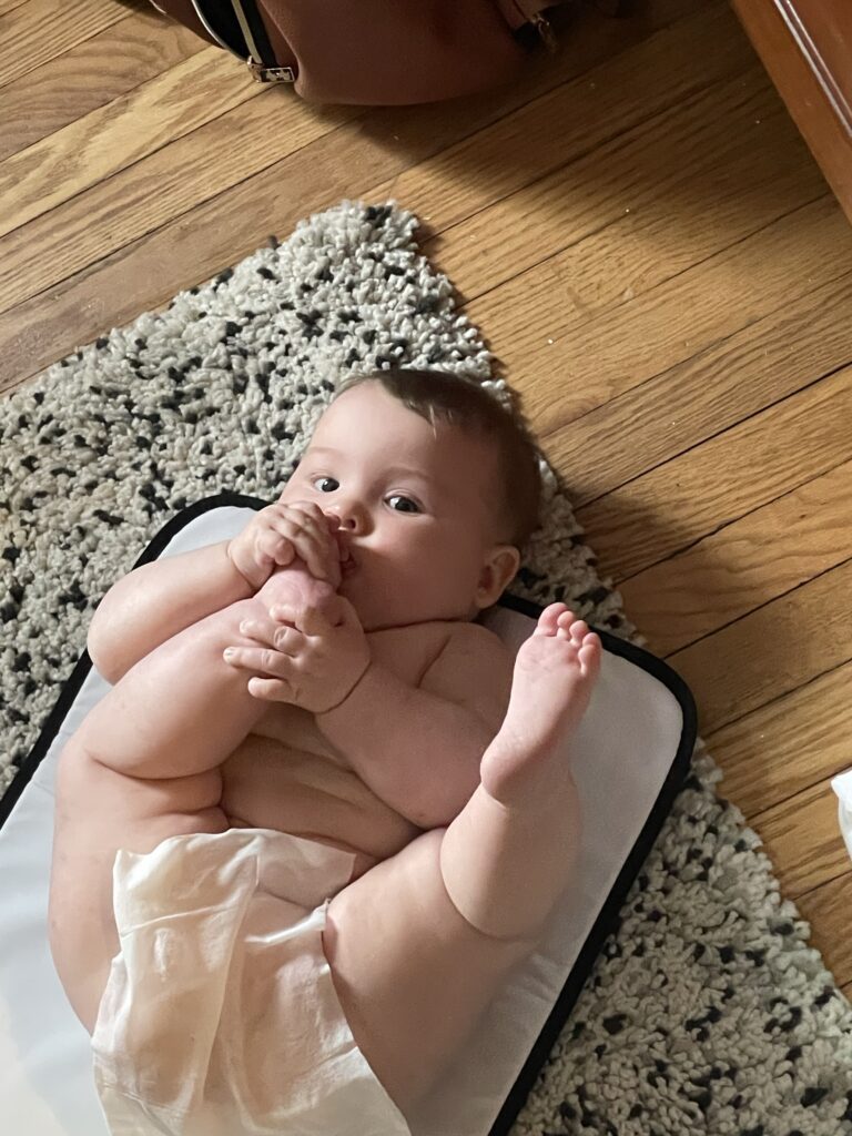 Back home, Jack was doing a quick diaper and outfit change when the cutest thing on the planet happened. Restaurant Tiny Toes is open for business with some of the tastiest toes in town. Just ask our first customer, Kerrigan Kreisler!