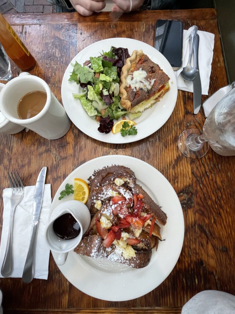 We sat down and commented on the atmosphere (mostly old women) and the waitress asked for our order. Maddie ordered a tomatoe and mozzarella quiche, and I ordered the French toast.