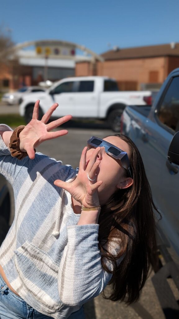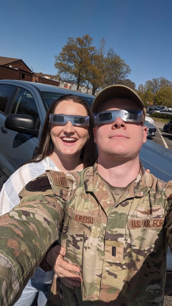 Anyway I went to work for a little while, came home to eat lunch, and then worked a while longer until 2: 50 when Maddie came on base to see the eclipse. It was pretty cool to me. I had seen a total eclipse in 2017 at The Citadel, but I somehow forgot it completely. I remember we were all lined up on the parade deck and they had given all of us glasses, but I do not remember looking at the eclipse.